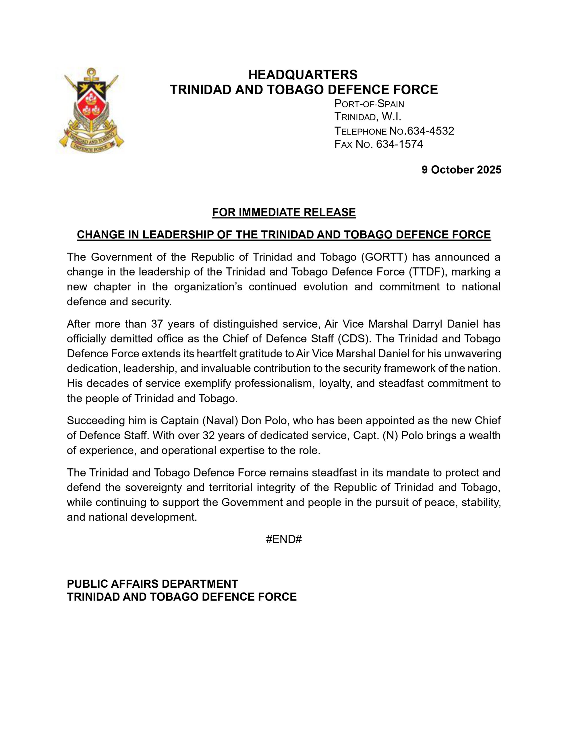 TTDF Media Release – CHANGE IN LEADERSHIP